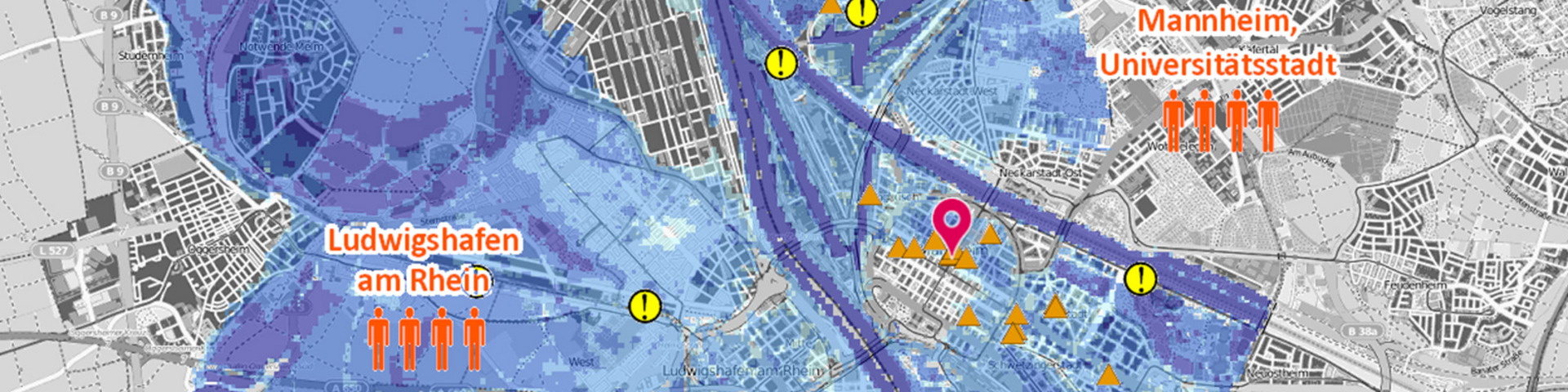 Basiert auf den nationalen und regionalen Hochwassergefahren- und Hochwasserrisikokarten hat die IKSR den Rheinatlas (Hochwasserkarten der Internationalen Flussgebietseinheit Rhein) erstellt. Dieser führt auch zu den nationalen Kartenportalen.