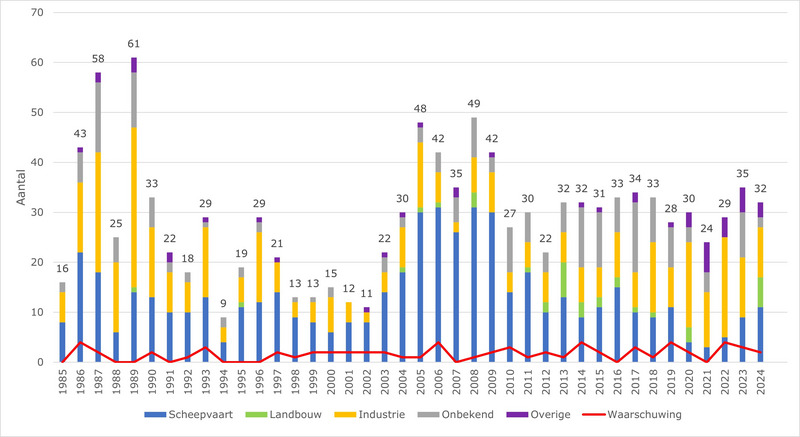 *Als zoekacties ook zijn verstuurd als informatie of waarschuwing, worden ze niet meegerekend in het totaal van de meldingen.